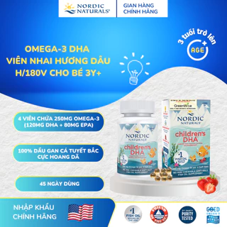 DHA omega-3 Nordic Naturals H/90 viên nhai vị dâu, Hỗ trợ phát triển trí não & sáng mắt cho bé từ 3y+